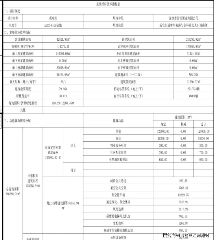 深圳规自局披露了观潮府项目的《建设工程规划许可证》及总平面图。