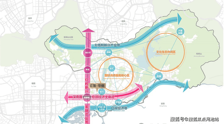 双枢纽:罗湖口岸跨境枢纽、罗湖北站(建设中)高铁枢纽