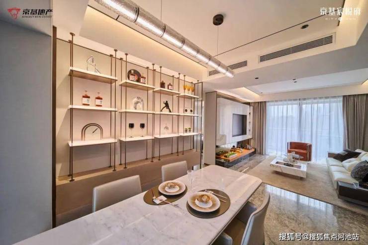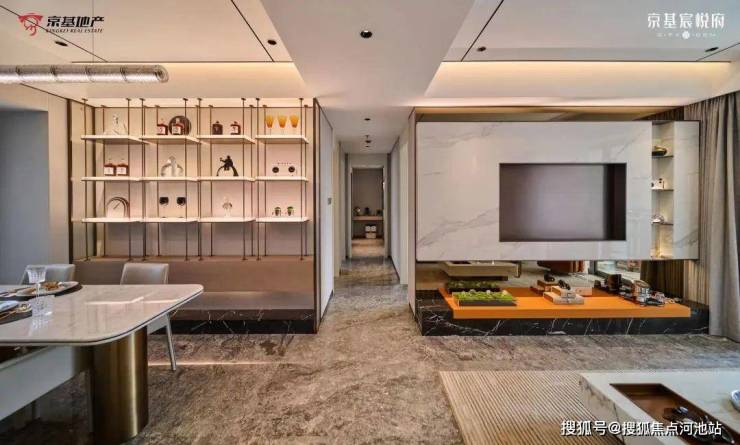 京基宸悦府本次惊艳亮相的建面约110㎡美学生活样板间,采用当下流行的现代风格,整个空间搭配高贵的深棕色与奢华金色,升华出优雅精致的居住空间。