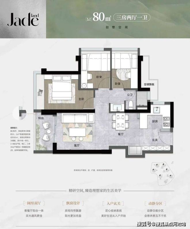 4、良好的户型设计:80平方米能做到3房户型,这样的设计提高了空间的使用效率,使得居住更加舒适。