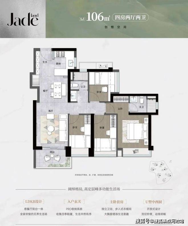 卓越珺奕府户型为80㎡三房两厅一卫、89㎡三房两厅两卫、106㎡四房两厅两卫及113㎡四房两厅两卫。80㎡做三房,户型方正,使用率高。