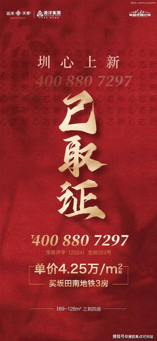 363万起 坂田【远洋天萃世纪】89-138平3-4房,全套价格表曝光!10号线光雅园站无缝链接,3站福田!