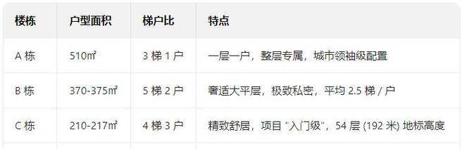 预算充足者可考虑 B 栋 (370㎡) 或 A 栋 (510㎡),梯户比与私密性最佳