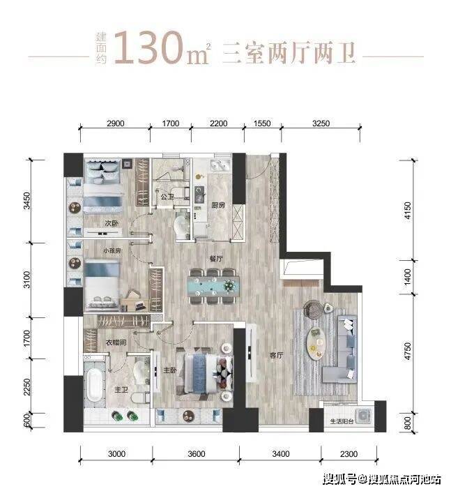 【户型④】北01+02/南10+11:约130㎡三房两厅两卫