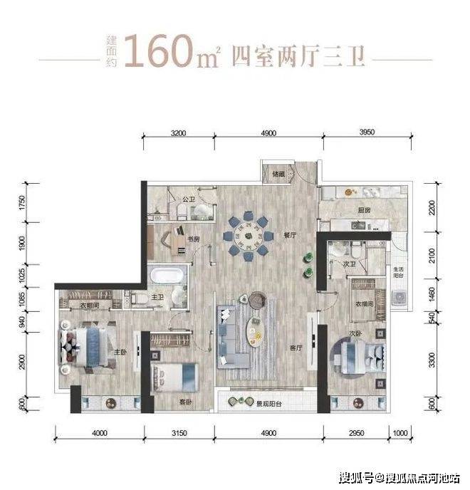 【户型③】北03+05/南08+09:约160㎡四房两厅三卫