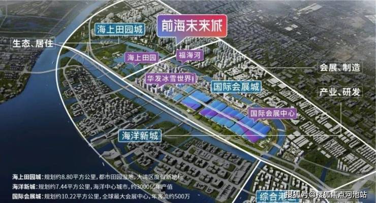 会展海洋城在前海扩三城一港的空间规划;纵观全球,经济制高地必须具备国家产业经济、顶级文旅配套、高端居住大城这三大要素;
