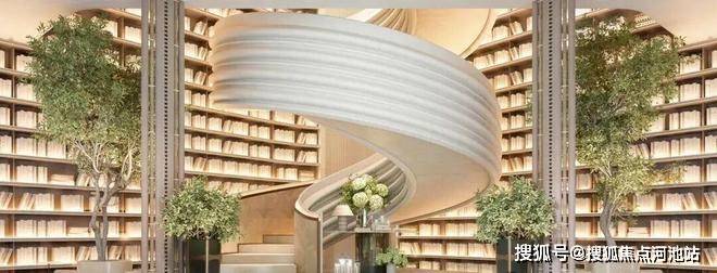 汲取白马庄园旋转楼梯灵感,定制局部挑高超9m万卷书屋,打造区域首个社区图书馆,上千本书籍静待翻阅。