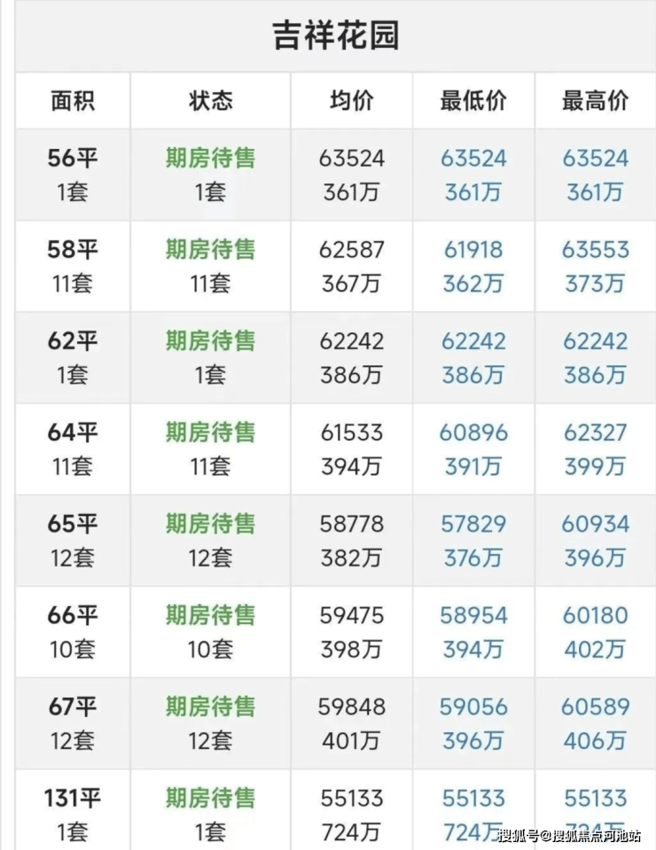 坂田吉祥花园(住宅)销售方案公示。本次预售住宅房源为1栋A单元、B单元共计61套,建筑面积约57㎡-67㎡、约132㎡、约188-193㎡,共计3种户型,均采用精装修交付。