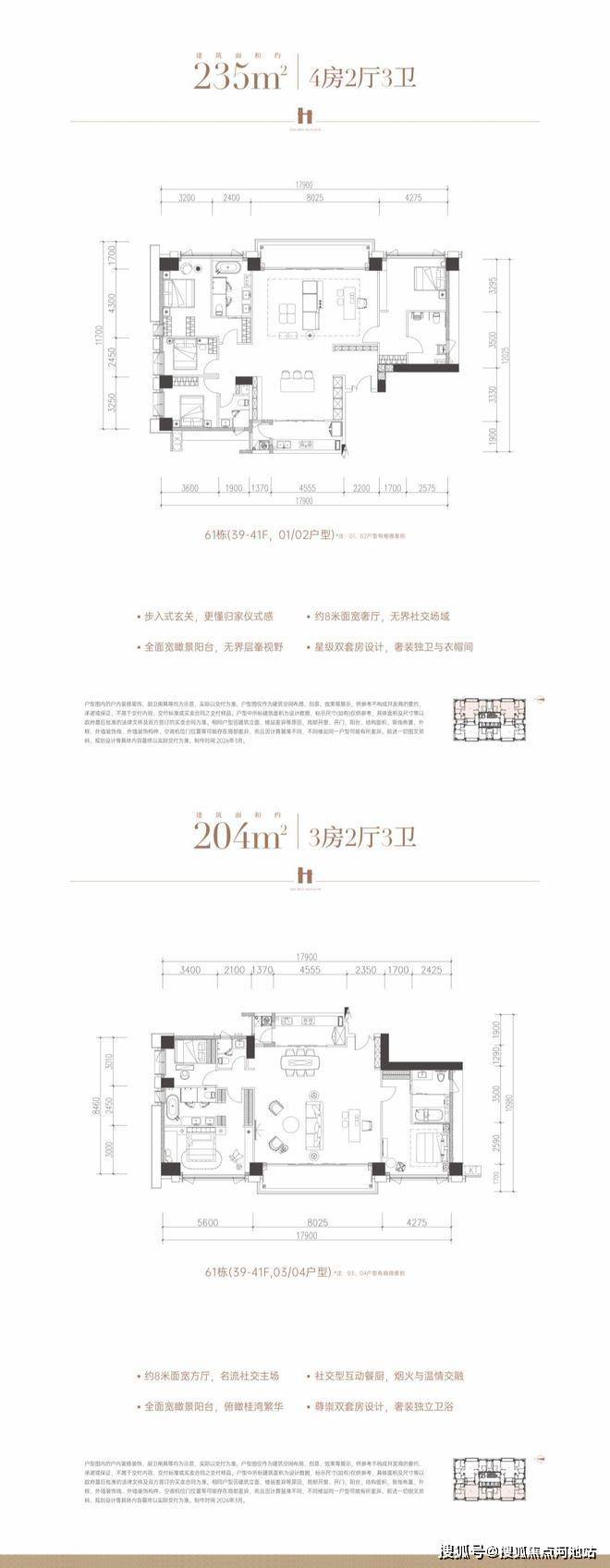 约204-234㎡ 高区大平层,2195-2595万;