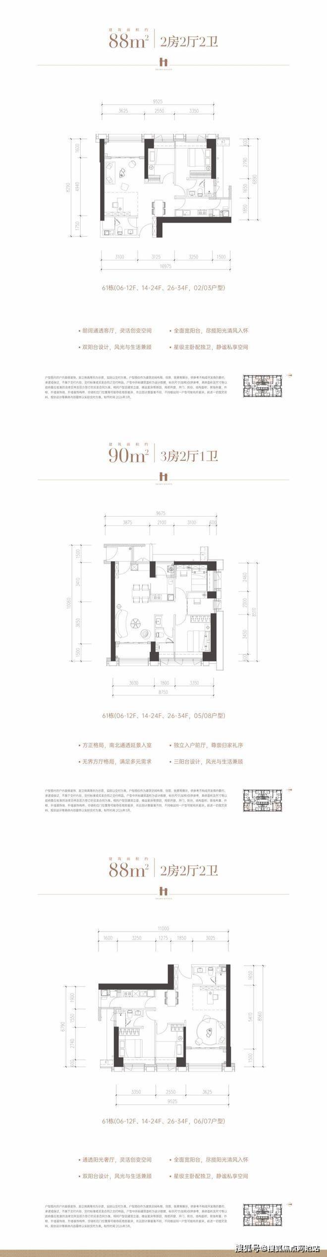 约88㎡ 2+1房二卫,120套,639-835万;
