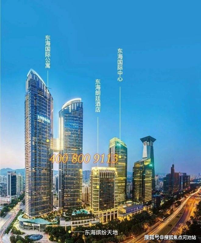 东海国际公寓,项目位于深圳福田区,规划总占地 3.6 万平米,总建筑面积 50 万平方米,是东海集团倾力打造的城市地标式综合体。项目由两栋国际甲级写字楼、一座国际五星级酒店,两座摩天公寓及商业组成。两座公寓最高层单位分别A座82层308 米、B座75层 275 米,是亚洲第壹高纯公寓社区。