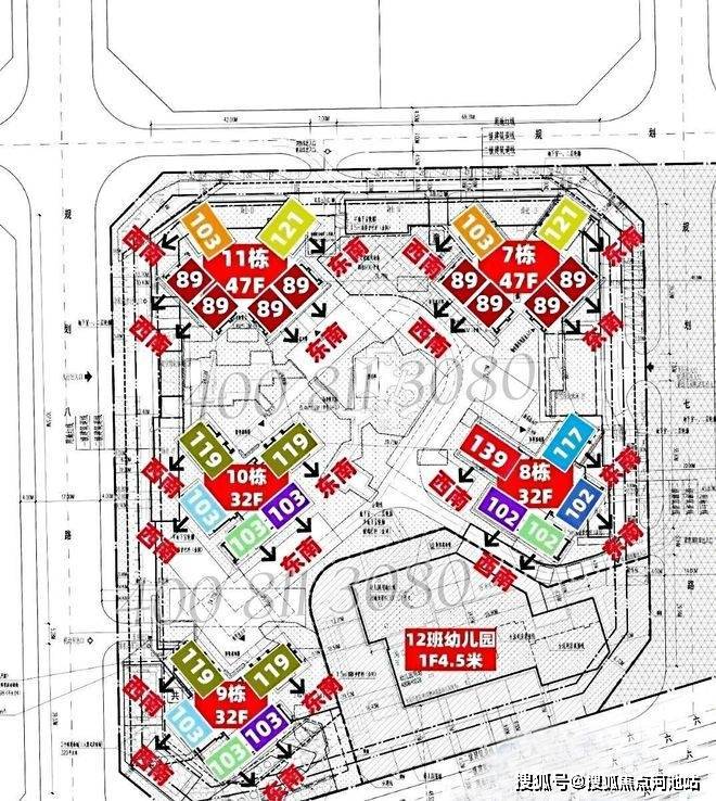 西区:占地2.2万㎡,容积率5.16,涵盖住宅、商业、教育及基础设施。建筑包括:7栋47层3梯6户;12栋46层3梯6户;8栋32层2梯5户;10/11栋32层2梯6户;9栋为幼儿园。