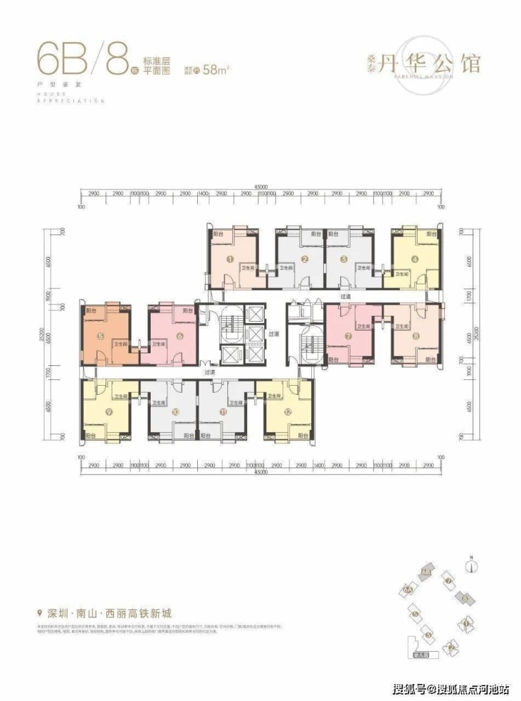 桑泰丹华公馆,项目位于深圳南山西丽,本次开盘预售房源共计1795套住宅,建面约58-101平,共2个住宅户型。