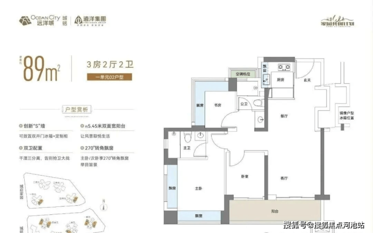 •主推产品:约89㎡三房两卫、约120㎡四房两卫