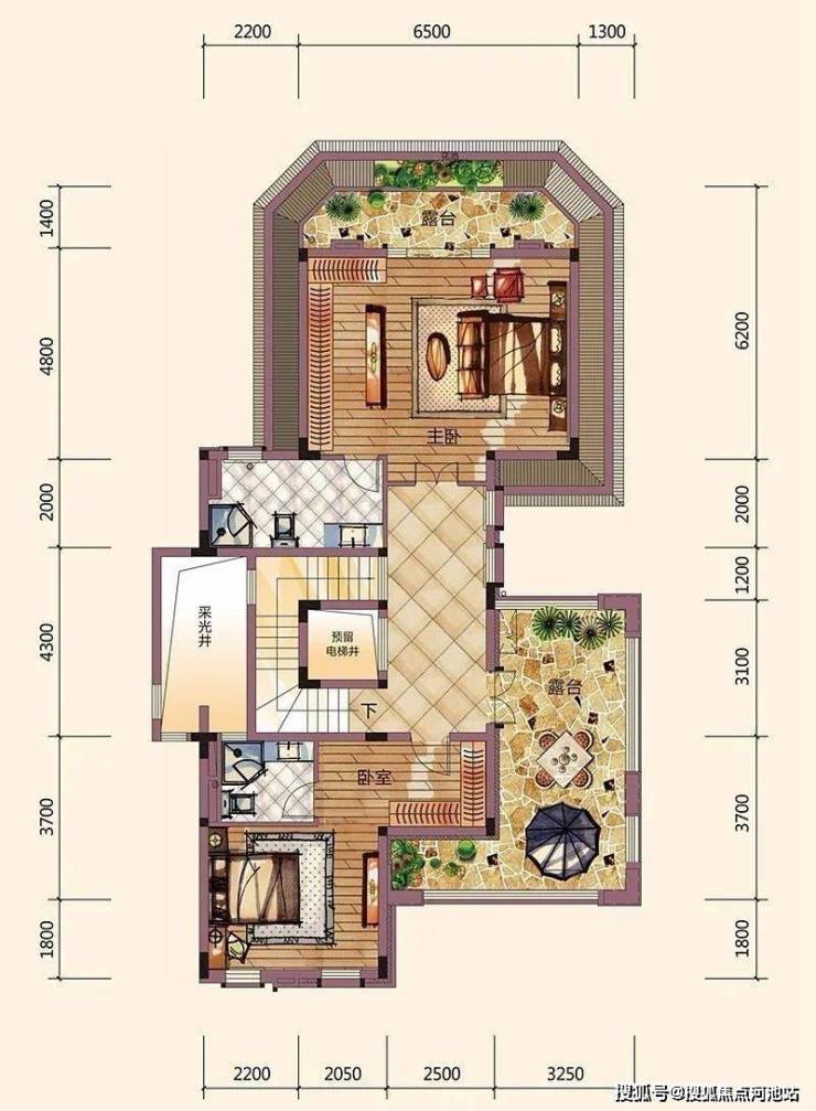 B户型,独栋别墅,6房3厅6卫,双首层阳光地下室,预留私家电梯位,照顾全家人的生活品质需求。