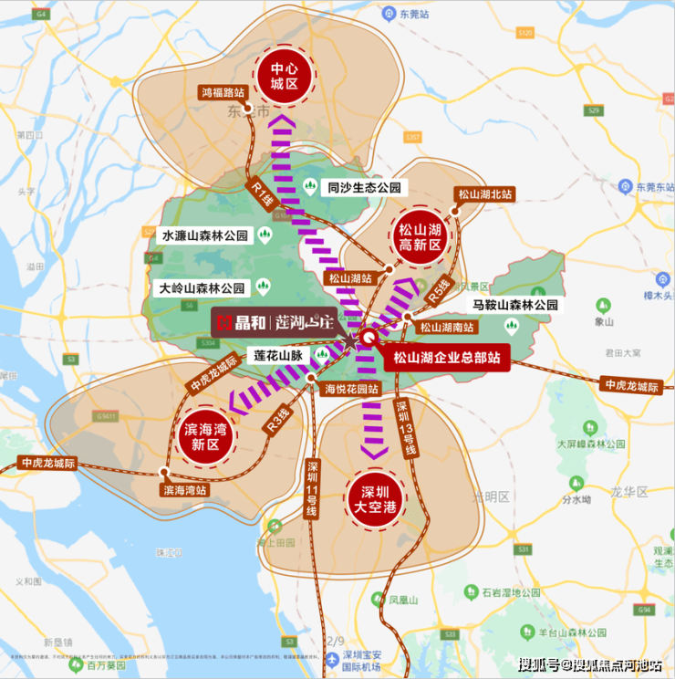 住在莲湖山庄,出行也是一大优势,距离规划中的松山湖企业总部仅700m,该处汇集东莞R3线、R5线和中虎龙城际线三条线,其中东莞R3线将接驳深圳地铁11号线。