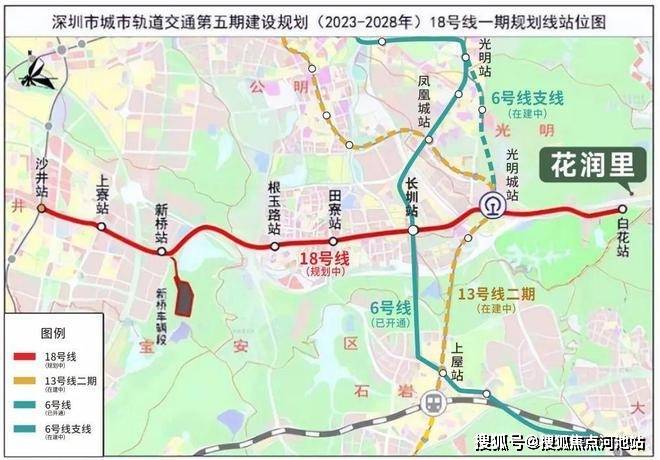 【地铁18号线】1站直达光明城站,换乘13号线(在建),6站到南山;