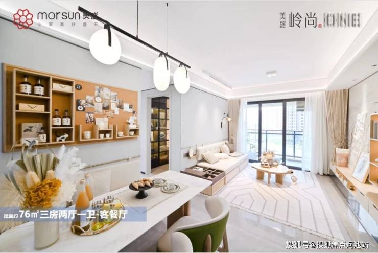 对比其他新盘,基本上要90多㎡的大三房户型才会有如此奢阔的客餐厅空间和开间。