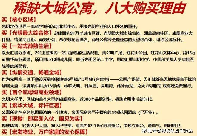 免责声明:以上展示的关于深圳光明天汇城公寓项目最新相关的最新图文资料可能部分来自网络,具体细节以最终签署的购房合同为准,如无意存在侵犯某方权益请及时联系我们处理。