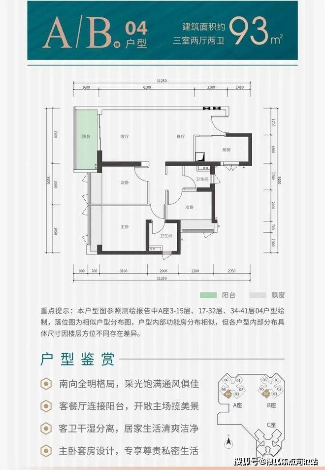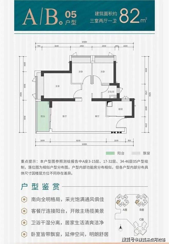 3.户型设计合理:全南向采光,82㎡实现三房、93㎡三房两卫,得房率76.2%,LDKB一体化布局提升空间利用率。