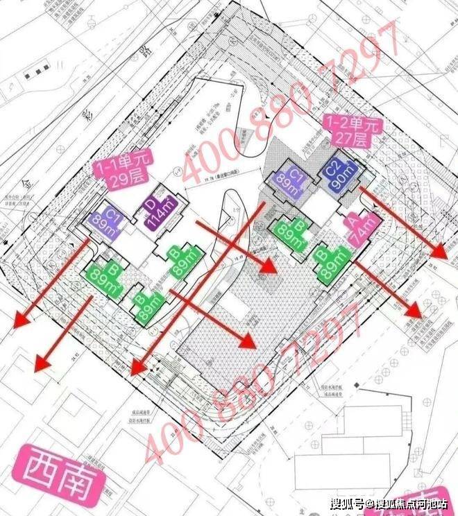 总层高:1栋1单元29F、2单元27F