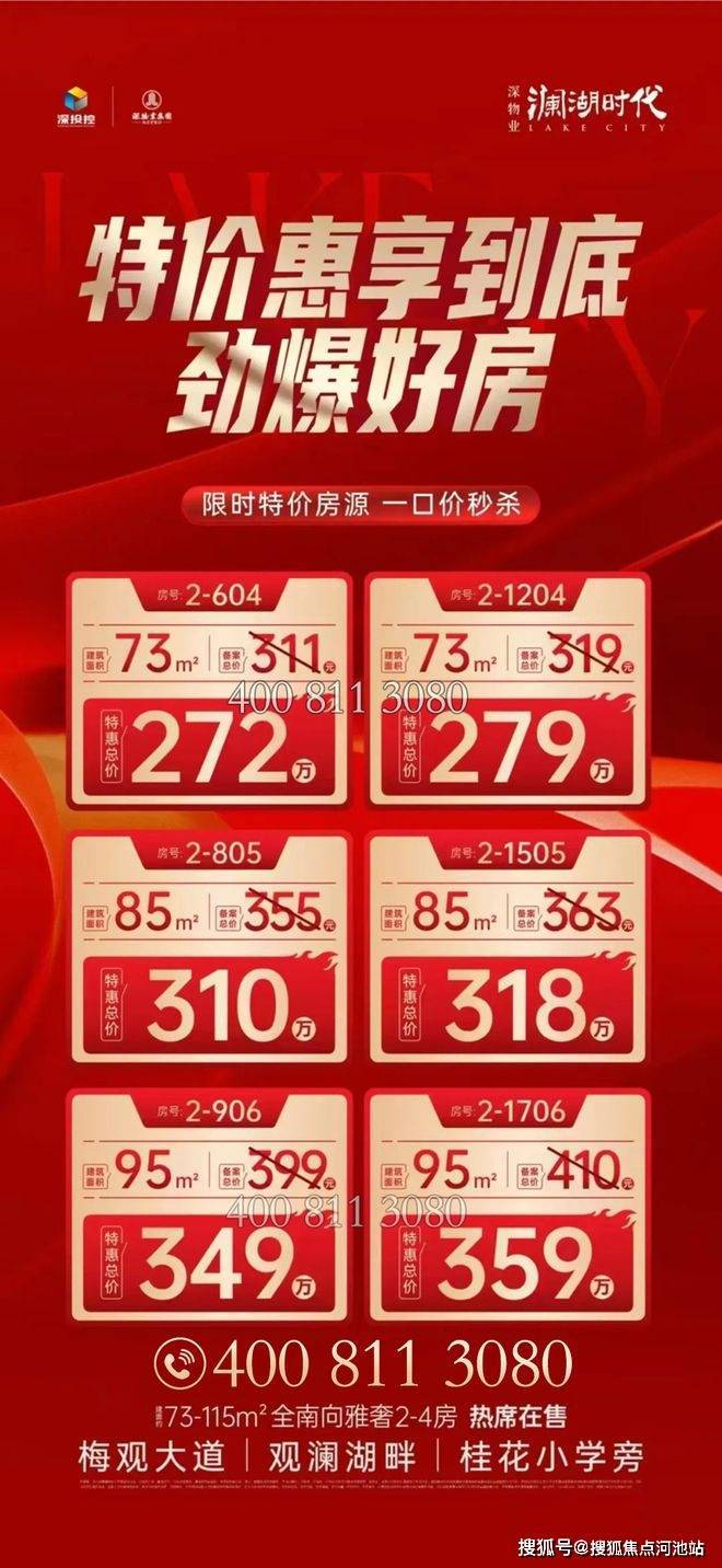 深物业澜湖时代,龙华观澜高尔夫水岸大城,单价3.1万起,建面73-115㎡2-4房!