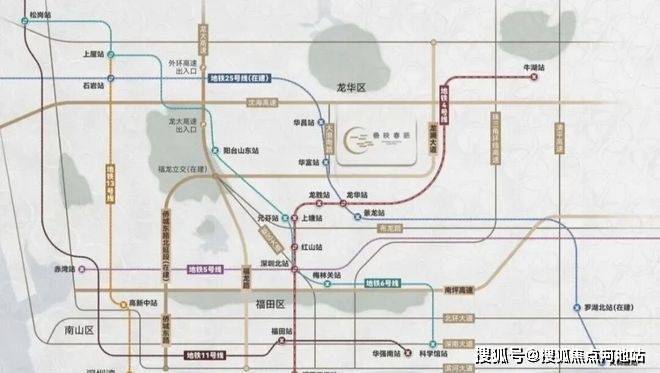 项目聚势地铁/快道/高速/高铁立体交通路网,约480米(直线距离)举步25号线华富站(建设中),直达北站枢纽、福田CBD。