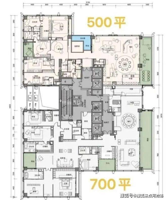 户型设计:户型面积跨度约209-1150㎡,涵盖四房、五房及复式户型。主力户型采用“框架核心筒+无次梁厚板”结构,空间灵活可变,层高约3.6米,配备大面宽阳台,部分户型可享270°海景或城市天际线景观。