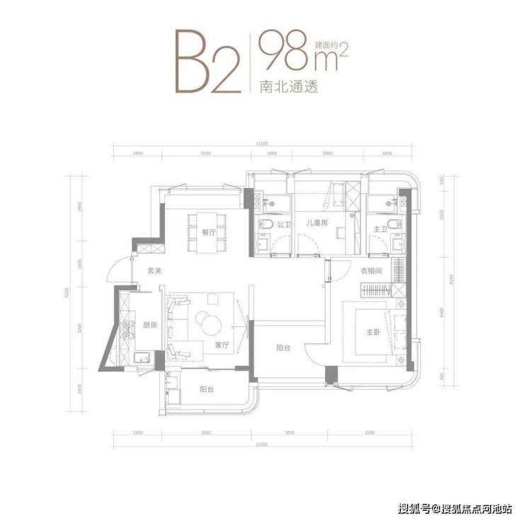 • 南北通透建面约98㎡户型