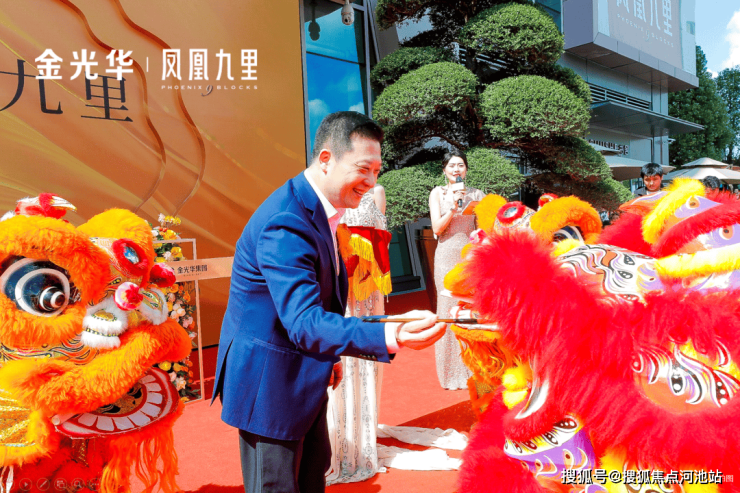 在乐队美妙的演奏中,舞狮登台欢腾表演,热烈庆贺,众领导也在到场嘉宾的欢呼声中,为展示中心与样板间的开放仪式进行剪彩。 随后,展示中心大门缓缓展开, 凤凰九里一如展翅的凤凰,傲领平湖与城市人居, 建面约70万㎡人文运动大城的美好生活,就此展开。