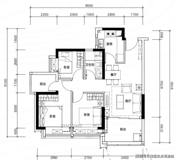 81㎡三房两厅两卫,空间利用极致,功能齐全。