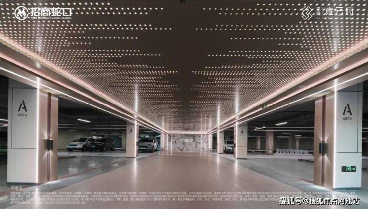 车行归家必经的地下车库同样富有仪式感。车库采用环氧地坪和部分环氧磨石工艺,配合质感铝板吊顶、星空顶、暗藏灯带,打造明亮而精致的车库空间,呈现出舒适惬意的归家之路。