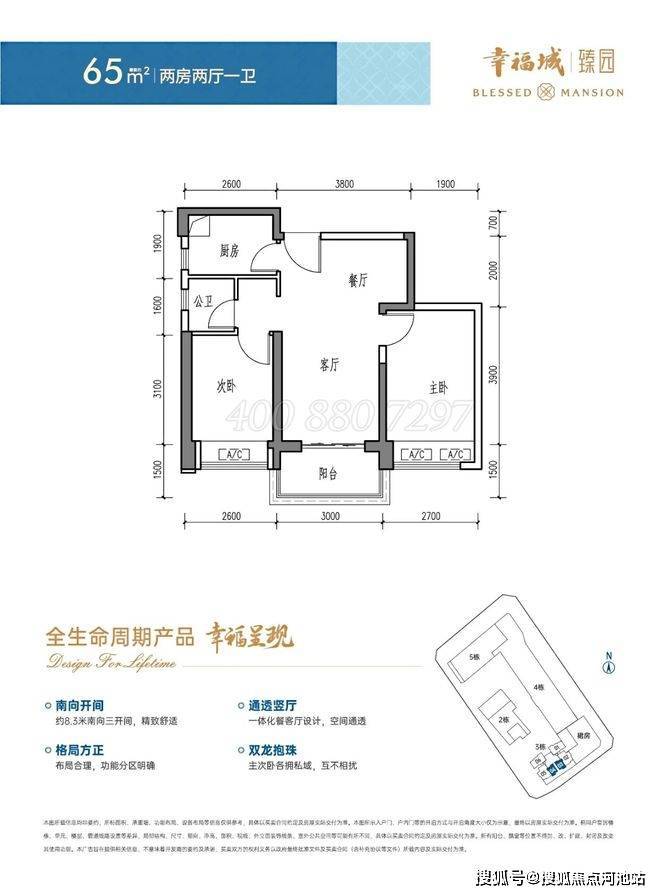 梯户比:1栋二单元3梯6户、三单元和四单元3梯4户、五单元3梯5户
