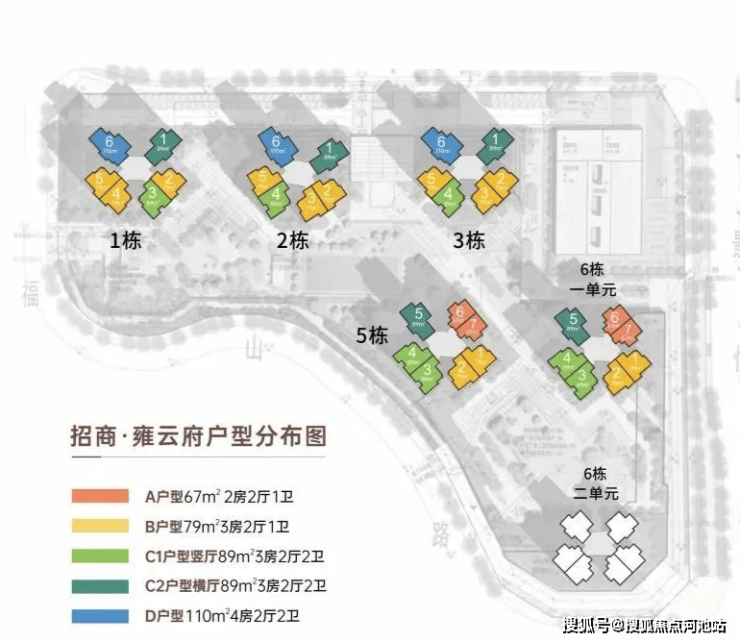 项目此次备案房源位于1/2/3/5/6栋,共925套建面约67-110㎡的2-4房住宅。