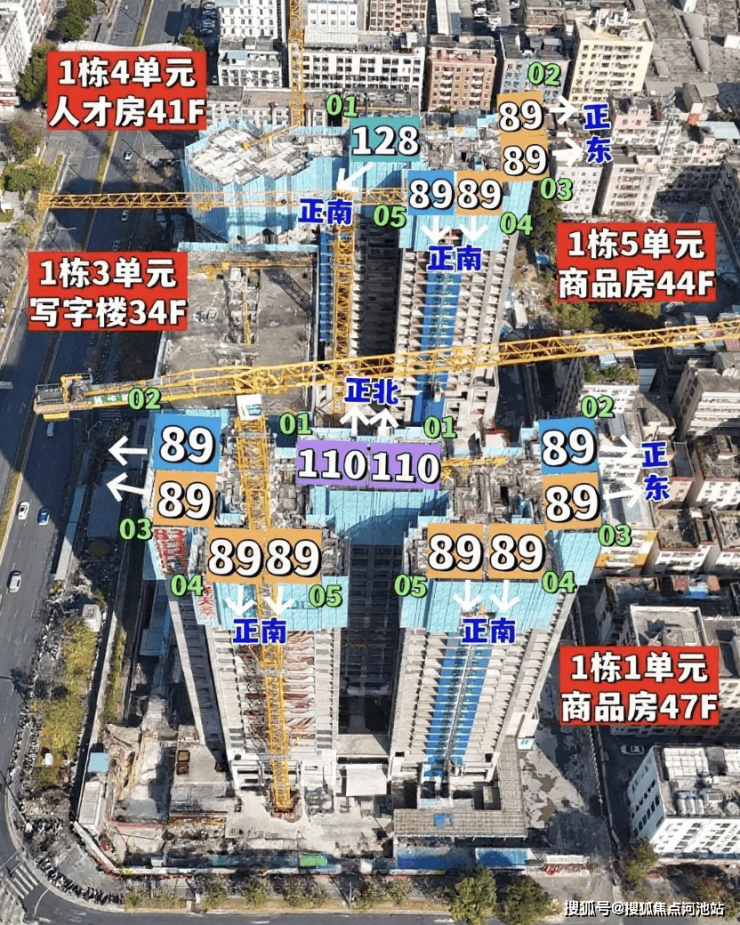 - 住宅部分:1栋1/2单元为47层商品房,1栋5单元为41层人才房,另有回迁房规划;