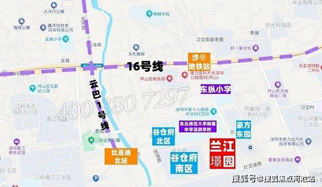 交通配套:项目距离16号地铁线“沙壆站”约400米,坪山云巴1号线“比亚迪北站”约900米,另外南坪快速出入口距离约1.5公里,1小时可快速通达南山。