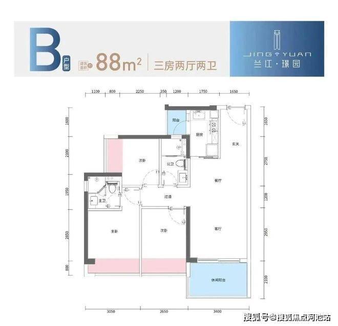 88m²的3房2厅2卫,折后总价185-202万,单价2.1-2.29万/m²。