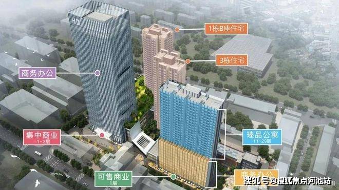 河东骏濠园项目是集公寓、办公、住宅、商业等为一体的都会综合体,由4栋建筑组成,1A栋商业,1B栋住宅,2栋公寓,3栋住宅。