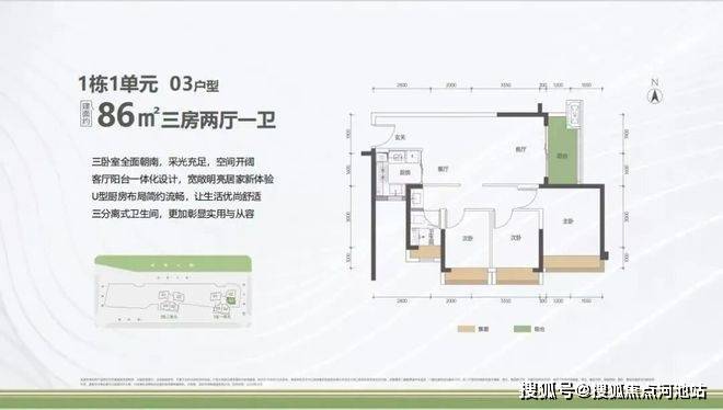 【建筑面积86㎡3房1卫】