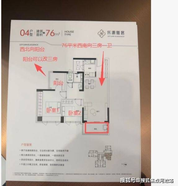 【04户型】约76m²舒适3房1.5卫 76平米两室一卫多个阳台 可以改三房样板间是三房一卫折后总价470万-490万