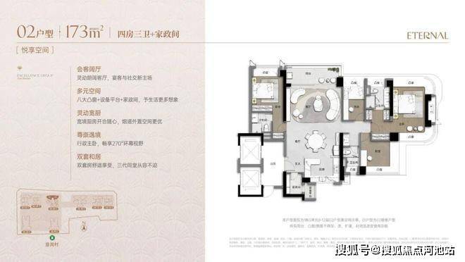105㎡3+1房2卫,折后单价约9.5-10.9万/㎡,总价约1003-1144万