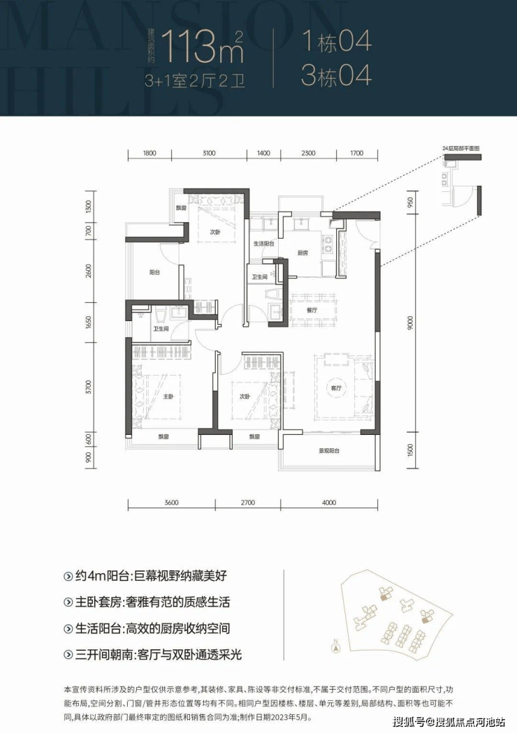 主力产品:建面约89-113㎡环幕云邸;建面约101-179㎡山海奢适多层