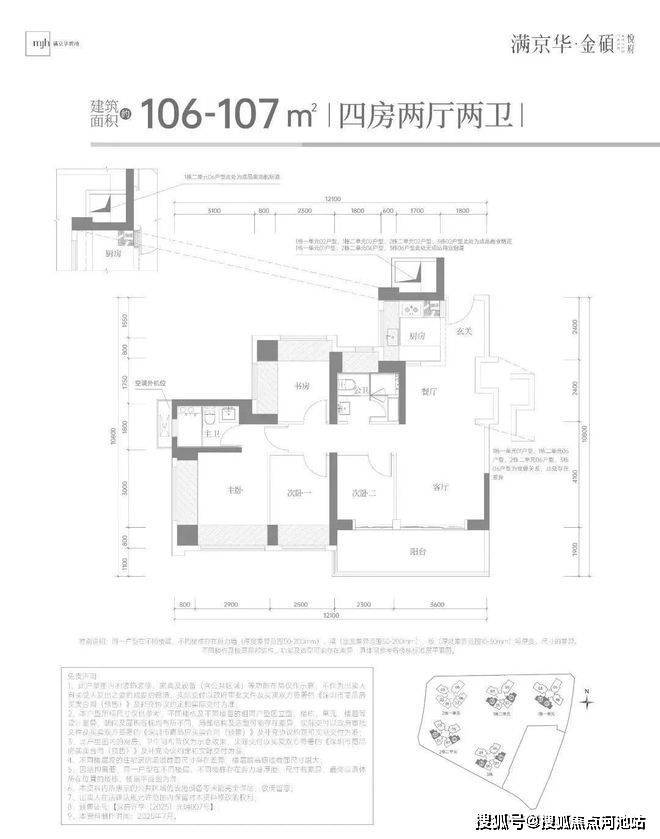 一期满京华・金硕华府:总占地面积约2.28万㎡,建筑面积19.8 万㎡,计容建筑面积约13.7万㎡,容积率6.0。项目规划5栋46-48层住宅,含46层的1栋1单元、47层的1栋2单元和2栋1/2单元、48层的3栋,还配建12班幼儿园,共1138 户。1栋1单元/2栋1单元3梯4户,其余楼栋为3梯6户,停车位1300个,车位比 1:1.14。