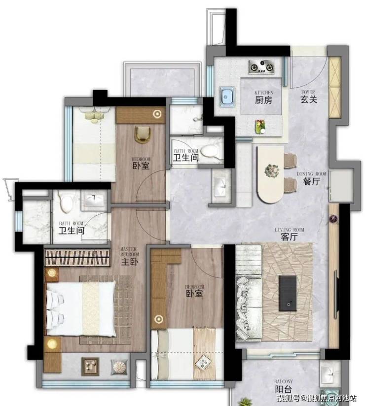 4、户型使用率较高,76㎡做了三房一卫,86㎡做三房两卫;