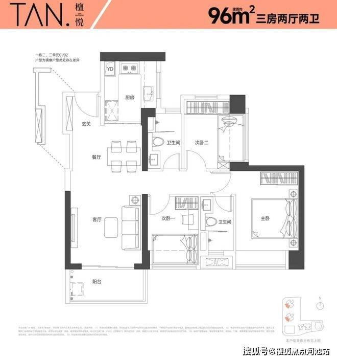建面95-96㎡三房两厅两卫户型则在舒适性上实现突破。主卧套房配备独立卫浴与景观飘窗,全屋飘窗设计让每个房间都能沐浴阳光。值得关注的是,96㎡户型通过优化承重墙布局,实现了比 95㎡更开阔的空间感,通风采光效果显著提升。这种细节处的匠心,正是合正集团深耕深圳 27 载的经验沉淀。