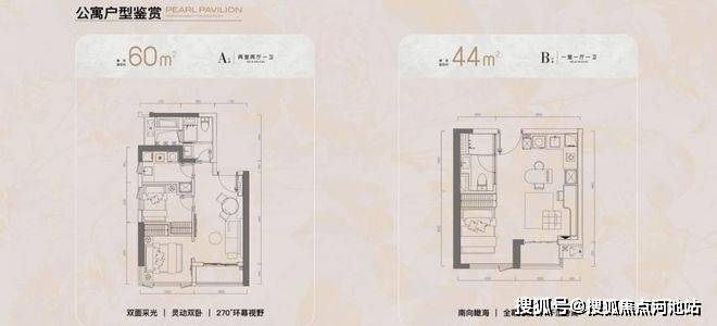 户型面积:公寓:36/44--46/60平(一至二房,70年产权)