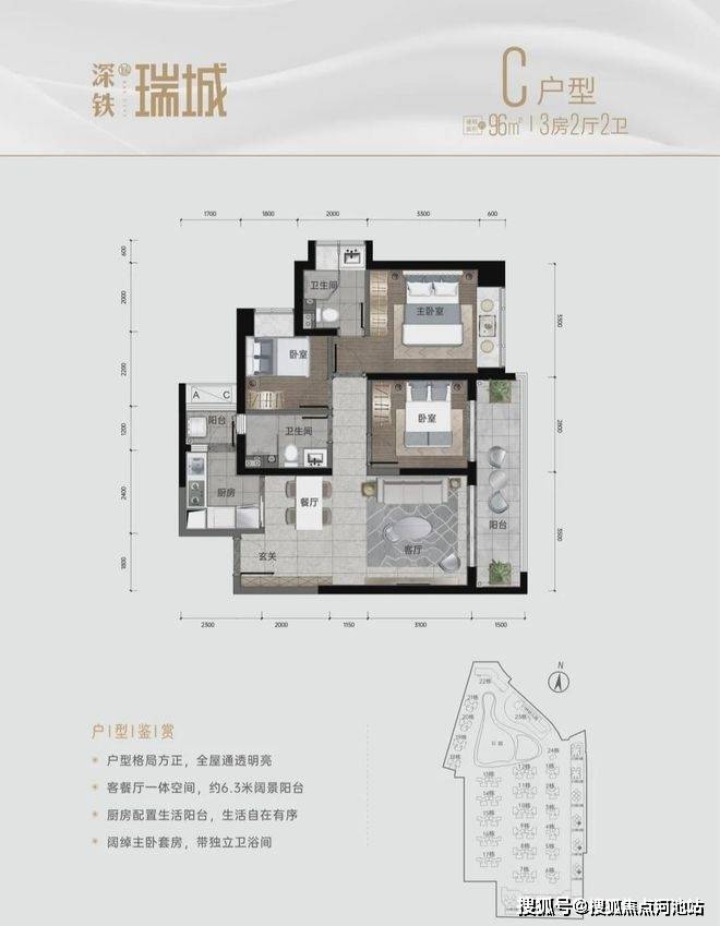 【深铁瑞城二期】单价仅3.4万起/㎡,建面约96-100平三房,楼下6号线地铁口