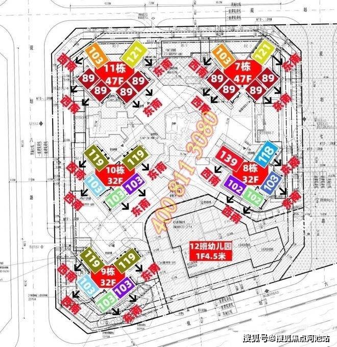 总规划2092户,全部是商品房,6栋/8栋2梯5户,3栋/5栋/10栋/11栋2梯6户,1栋/2栋/7栋/12栋3梯6户设计,地下2层,规划有2155个车位,车位占比1:1.03。