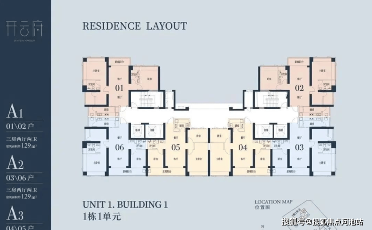 🔹1栋一单元A1、A2户型:面积约为129㎡