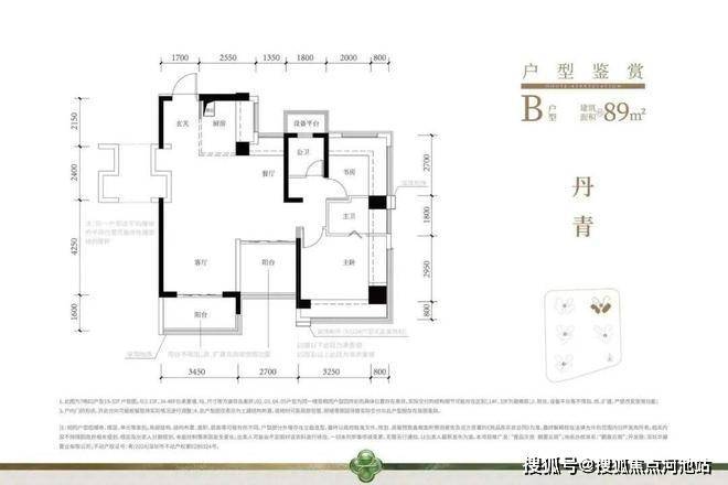 89㎡的4房2厅2卫,设计的是经典竖厅格局,进门入户玄关,客厅3.45米开间,动静分区,三开间朝南,分别做到了主卧14.54㎡/次卧7.96㎡/次卧7.56㎡/次卧5.8m²(包含墙体飘窗),主卧+1个次卧270°飘窗,U型厨房,公卫三段式干湿分离,得房率约102.2%(包含赠送),阳台5.52m²西南或东南朝向。飘窗赠送面积13.17m²+阳台赠送面积6.61m²+设备平台1.8m²=实际赠送面积约21.58m²。